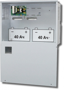 Резервированный источник питания, входное напряжение 150...250 В, выходное напряжение 12,9...14 В, номинальный ток нагрузки 4 А, максимальный ток нагрузки 5 А (до 5 сек), под один или два аккумулятора 12 В 40 Ач, световая индикация режимов работы, диагностические выходы "открытый коллектор", защита от короткого замыкания, защита аккумулятора от глубокого разряда, диапазон рабочих температур -10...+40°С, габаритные размеры 445х328х193 мм