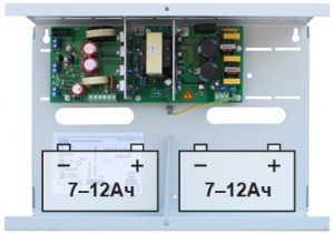 Резервированный источник питания, входное напряжение 185...242 В, выходное напряжение 27...27,8 В, номинальный ток нагрузки 4 А, максимальный ток нагрузки 4,5 А (до 5 сек), под два аккумулятора 12 В 7(12) Ач, световая индикация режимов работы, диагностические выходы типа "открытый коллектор", защита от короткого замыкания, защита аккумулятора от глубокого разряда, диапазон рабочих температур -10...+40°С, габаритные размеры 315х219х123 мм Предназначен для обеспечения бесперебойным питанием систем охранно-пожарной сигнализации, видеонаблюдения и других потребителей с номинальным напряжением 24 В постоянного тока