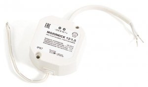 Моллюск 12/1,5 - Малогабаритный источник питания; 12 DC; 1.3 А; 90 ... 250 АС; -30...+40°С, IP67; Диагональ 55 мм. Защита от перегрузки и КЗ. При установке в плохо вентилируемом месте максимальный ток не более 1 А.