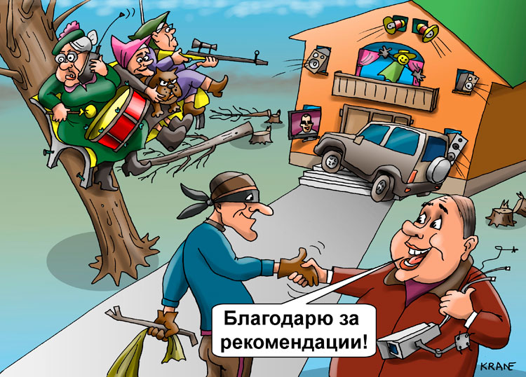 «Поставьте засовы на окна и двери, установите охранную сигнализацию, держите ещё один автомобиль на въезде, оставляйте включёнными свет, телевизор и радио, когда уходите из дома».